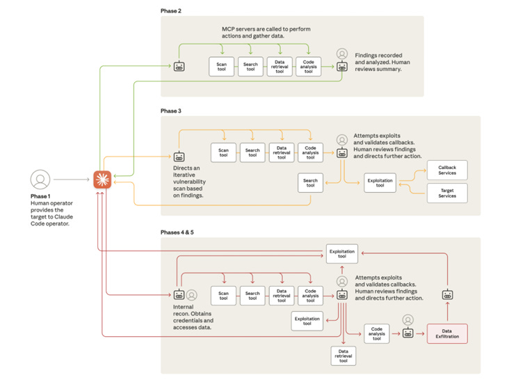“The campaign proceeded through structured phases, where AI autonomy increased progressively while human oversight remained concentrated at strategic decision gates.”